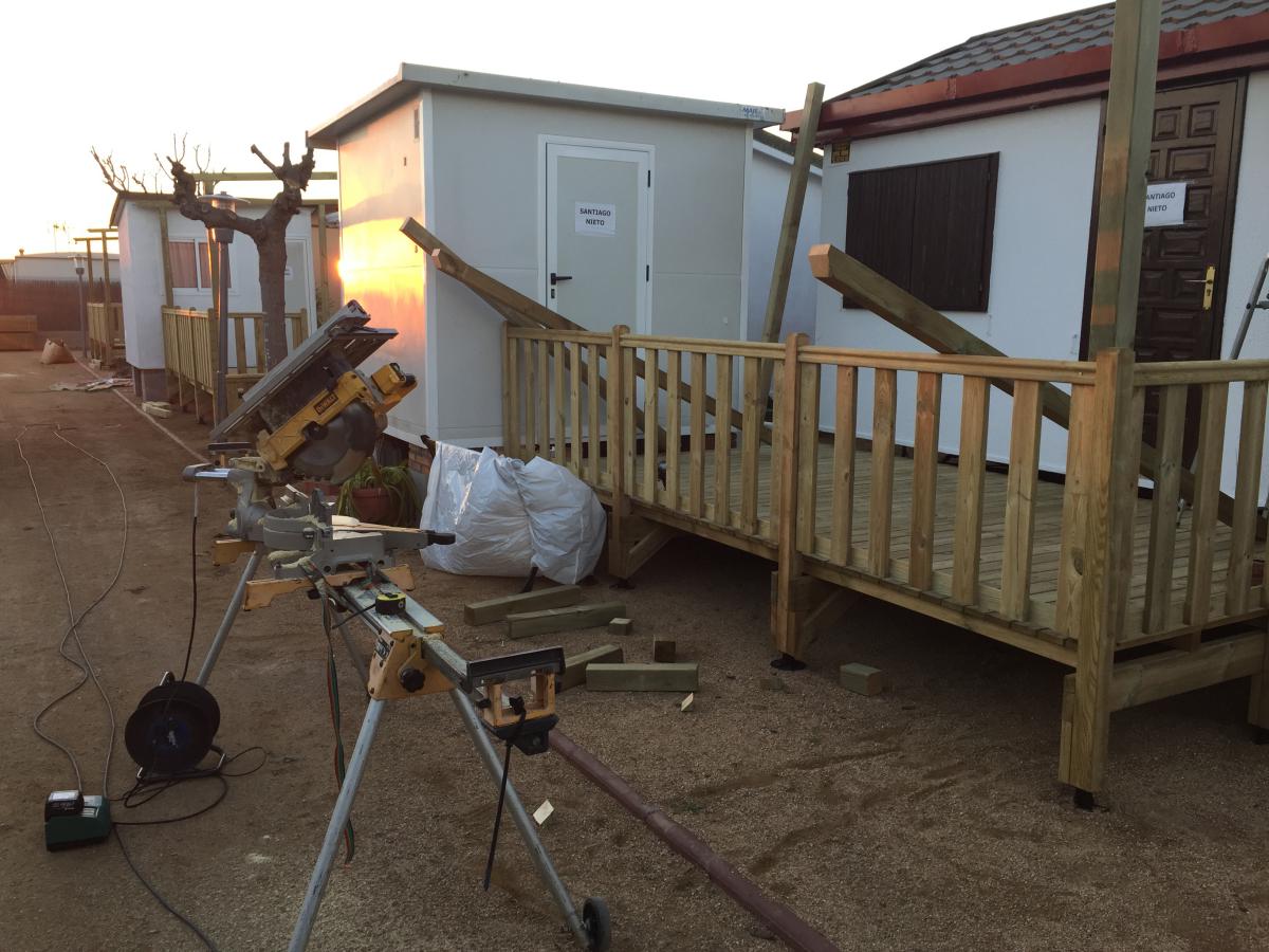 Servicios de montaje de terrazas, faldones y otros accesorios.