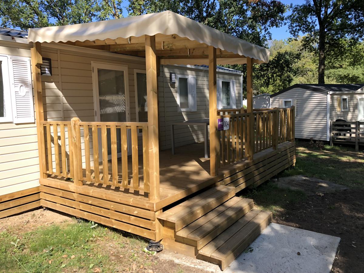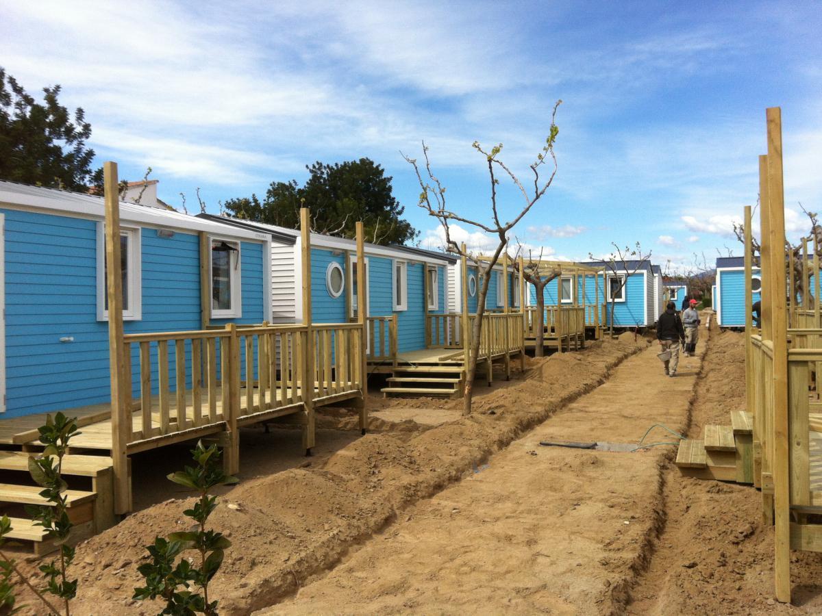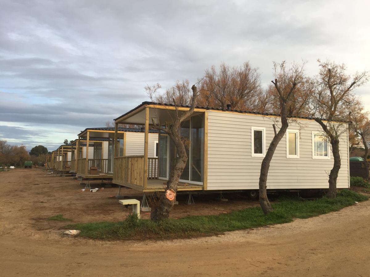 Mobilhomes ocasión instalados en una parecla de camping listos para entrar. En venta y alquiler.