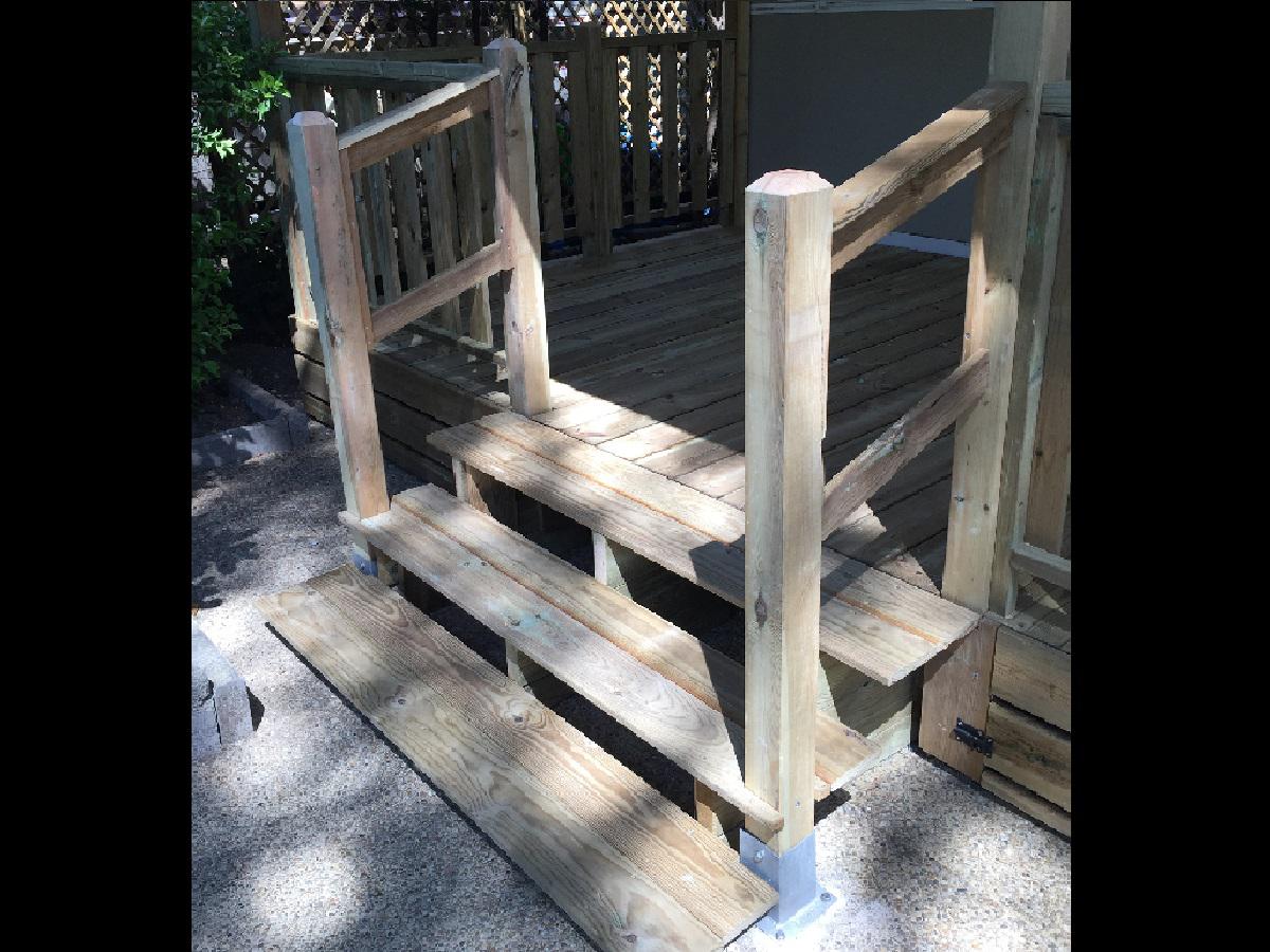 Escaleras de entrada y faldones para cubrir el chasís del mobilhome.