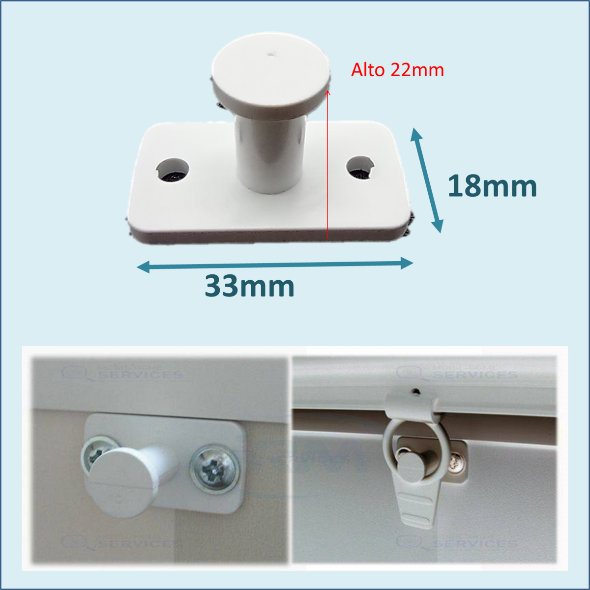 Pieza para sujeción de estor. Bloqueo estor o freno. Compatible con estor original de O'hara e IRM. Para anilla de sujección Ref. K53F000-2