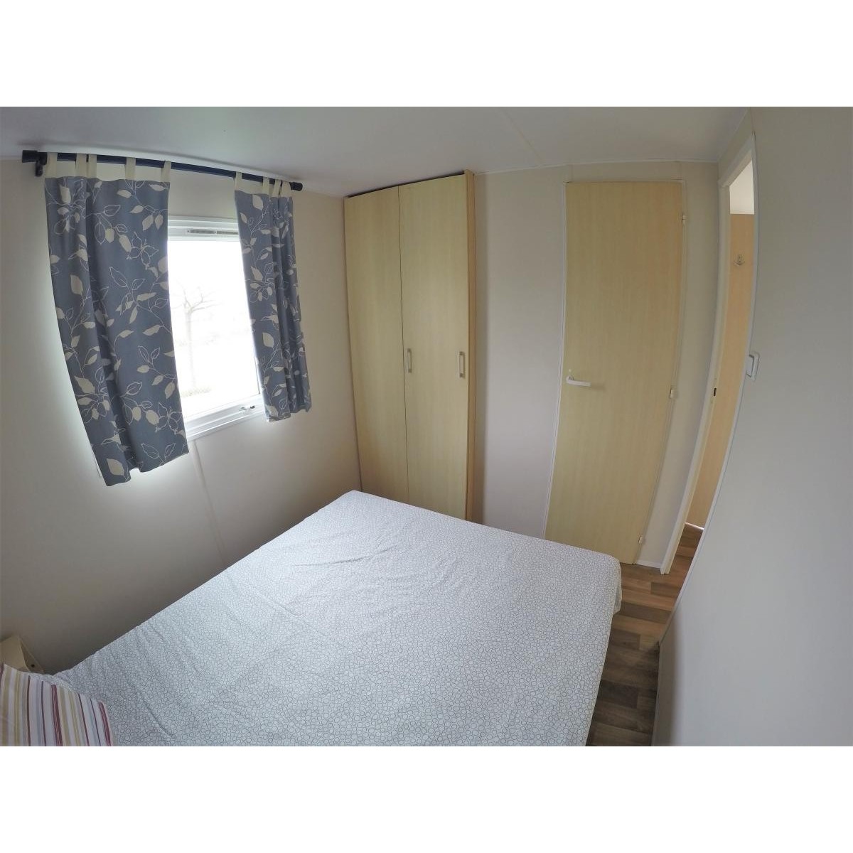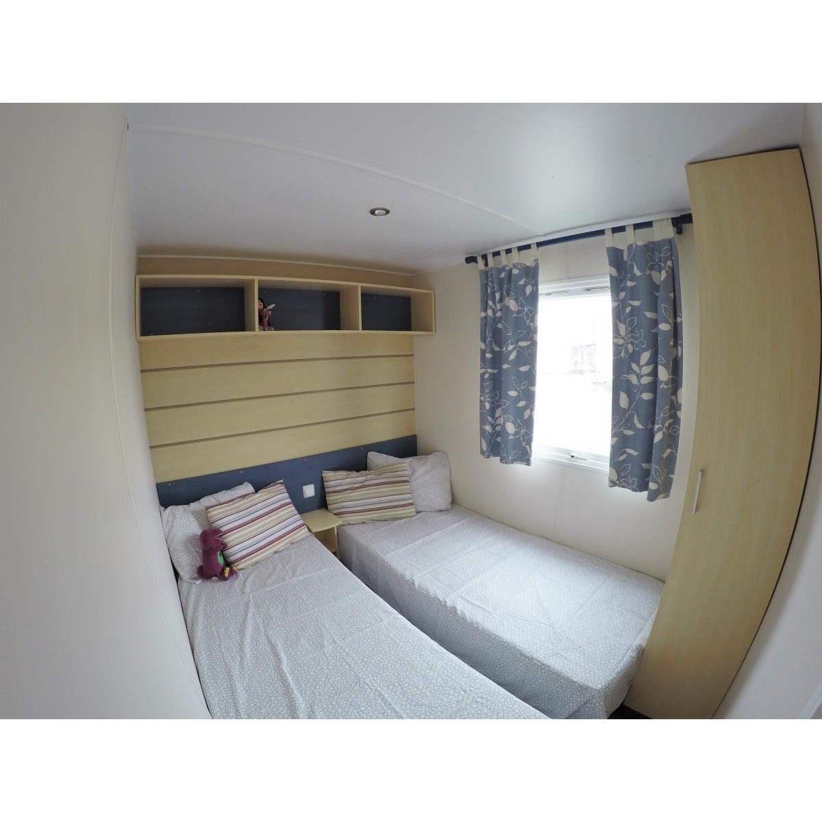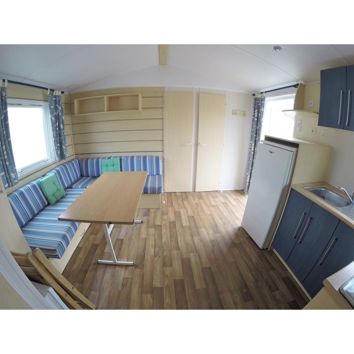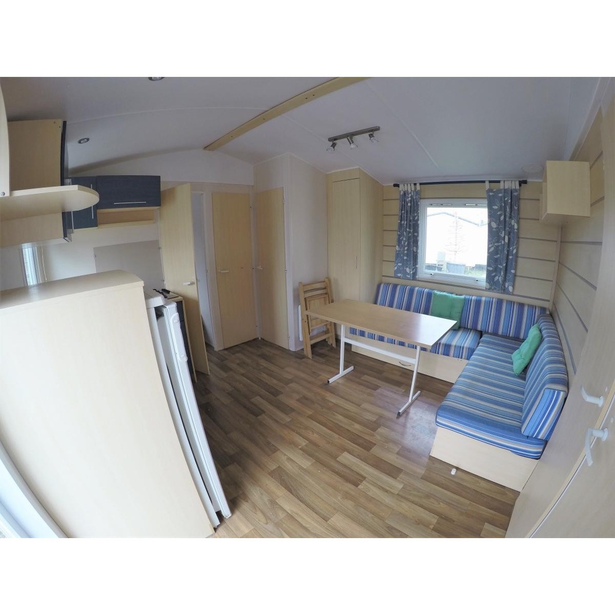 Modelo para 6/8 personas. Con tres habitaciones, una doble y las otras dos con camas individuales. Comedor espacioso con sofá cama. Cocina de gas. Calentador de gas o eléctrico. Doble acristalamiento en las ventanas. Frigorífico. Baño estilo francés. Calefacción eléctrica en el comedor.