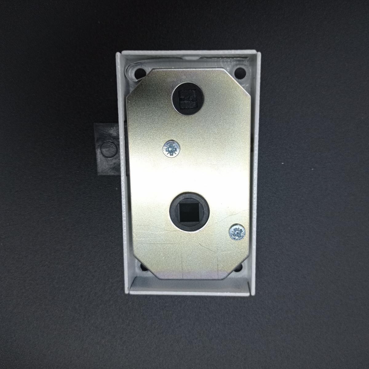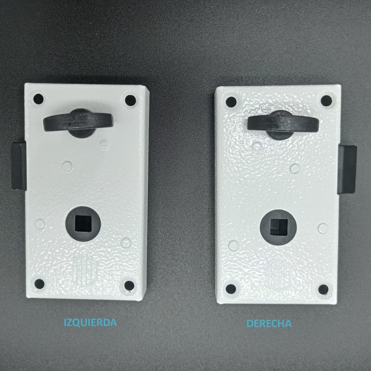 Cerradura para puerta interior de mobil home. Derecha y con bloqueo. Montada en superficie.