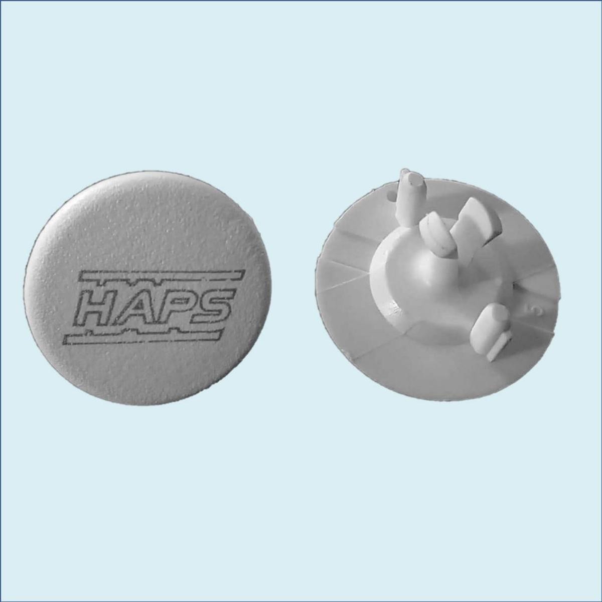 Tapón para bisagra de puerta exterior. Color blanco, puede contener el logo.