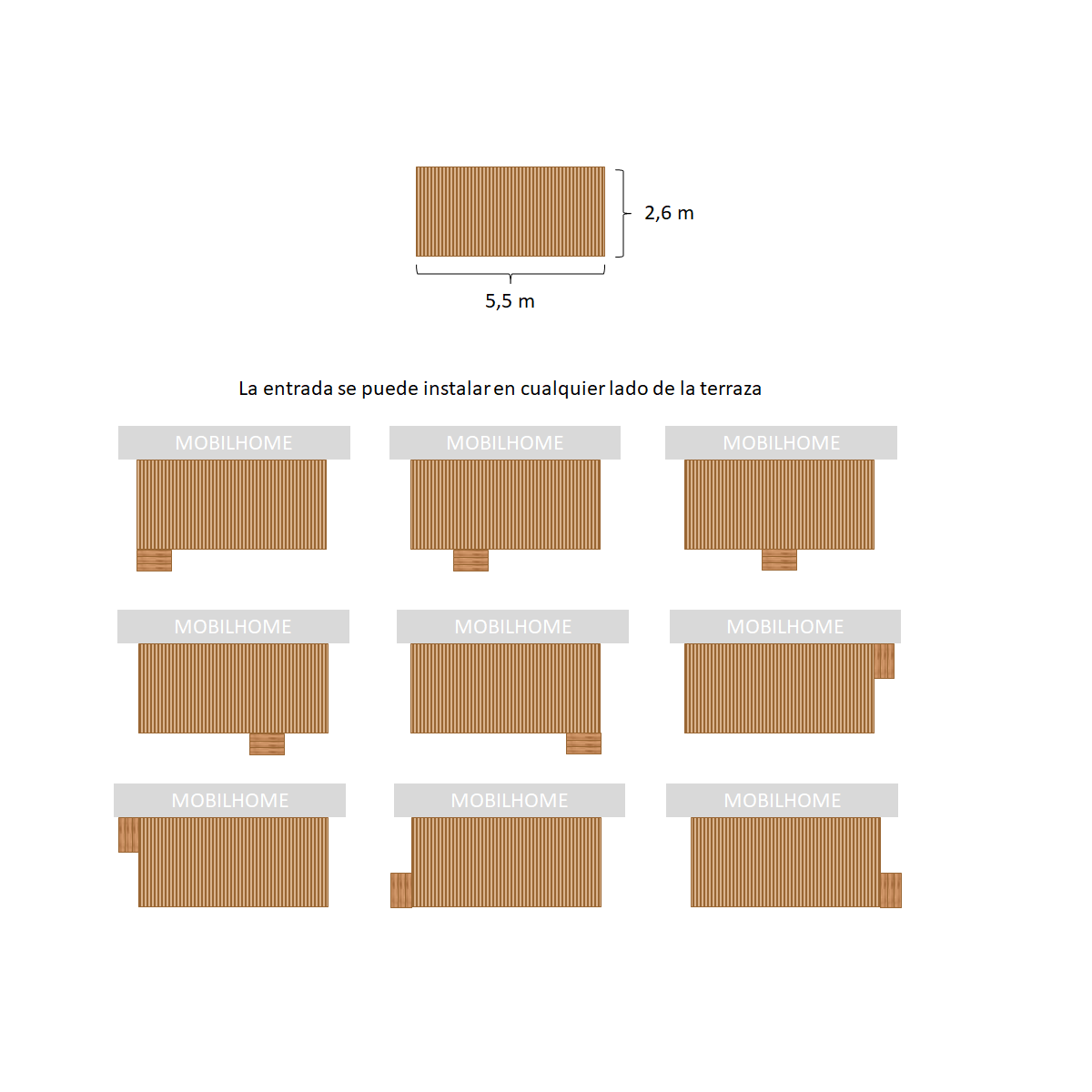 Terraza Silvestre de 5,5 x 2,6 preparada para toldo plegable. Entrega en kit.