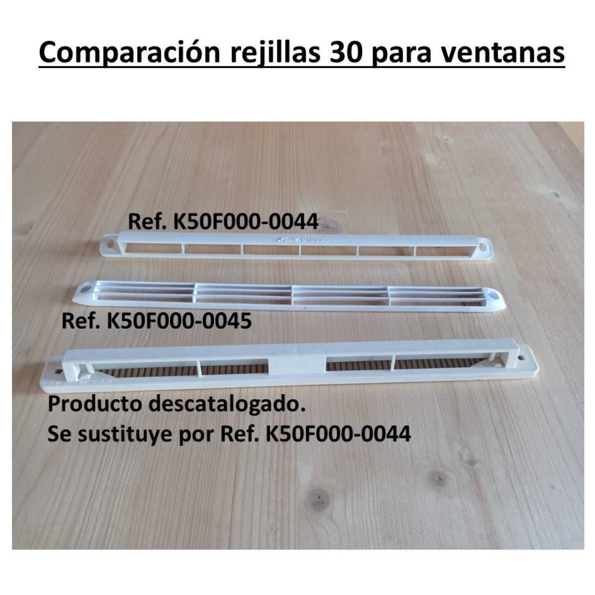 Rejilla para ventana o puerta. Exterior o interior. Pestañas con pendiente para evitar la entrada de agua si se coloca en el exterior.